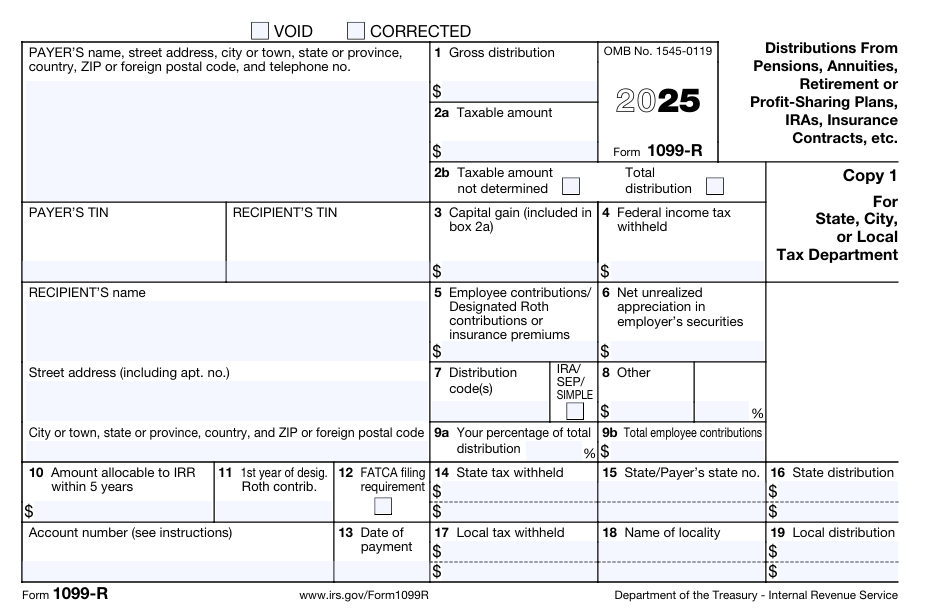 2025년에 인출하면 받게 되는 서류: Form 1099-R