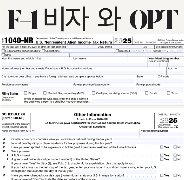 2025년 F-1 OPT 유학생 세무보고 (1040-NR · 한국 조세조약 · FICA 면제)