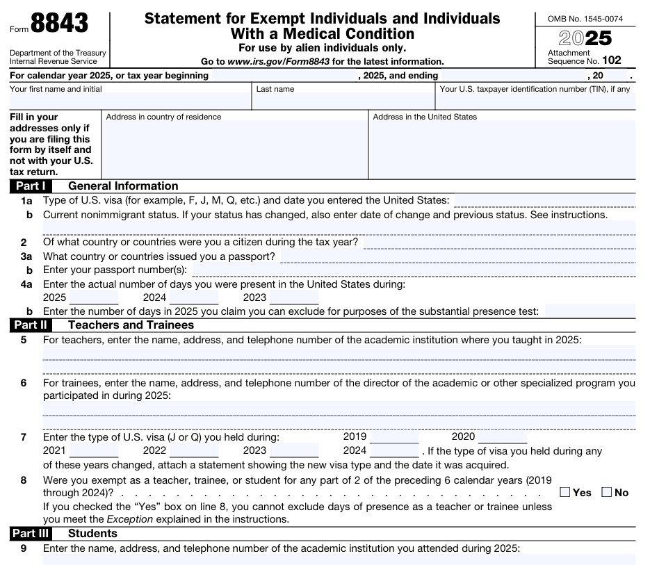 미국 소득이 없어도 Form 8843 제출 의무가 있습니다 - 소득 신고서가 아니라