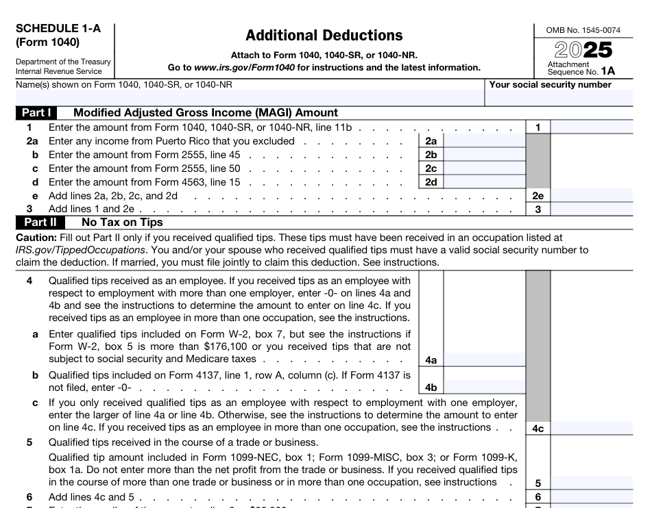 - Schedule 1-A에서 적격 팁 소득 공제 $10,000 청구