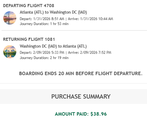 참고로 2주 전에 Fairfax, VA 에 다녀오면서 왕복 항공권을 $39에 결제했다.